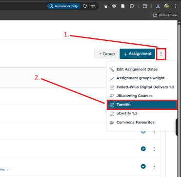 Select the three-dot-menu icon and select Turnitin.